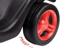 Besonders die Bereifung zeichnet den hochwertigen Rutscher aus: das Fulda-Bobby-Car ist mit den neuen Ultra-High-Performance Reifen Fulda SportControl ausgestattet. Das sieht nicht nur sportlich aus, sondern sorgt für hervorragende Fahreigenschaften. Denn dieser originale Premiumreifen wurde speziell für sportliches Fahren entwickelt. Dabei sichern die extra breiten Reifen einen guten Grip und sind durch die spezielle Weichkunststoffmischung besonders leise. Die passenden Felgen in leuchtendem Rot runden das topmoderne Design des spitzigen Rennwagens perfekt ab.