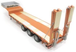Der Auflieger Goldhofer BAU STN-L3 entspricht seinem Vorbild bis ins letzte Detail und demonstriert den hohen Anspruch, den CARSON-MODEL SPORT an seine Produkte hat. Technisch wartet der Goldhofer mit einigen Besonderheiten auf: So sorgt beispielsweise ein optionaler Beleuchtungssatz (Art.-Nr. 500907071) für die vorbildgetreue Funktion der 7-Kammer-Rückleuchten. Die geteilte Rampe ist zum Befahren per Hand abklappbar. Der Auflieger ist mit drei zwillingsbereiften Achsen ausgestattet. Das Fahrwerk ist an Luftfederattrappen aufgehängt. Der Rahmen besteht aus 1 mm Stahlblech, dieser ist lasergeschnitten, CNC gebogen und verschweißt. Somit lassen sich auch schwerere Modelle zur nächsten Baustelle befördern. Alle Stützen sind mechanisch verstellbar. Dank der geteilten und in verschiedenen Stufen klappbaren Rampe können verschiedenste Modelle den Tieflader „befahren“. Ein Plateau bietet zusätzlich Ladefläche. Echtholzeinlagen, wie sie auch das Original hat, sind ebenfalls an Bord des Bausatzes. Der große Vorteil des Goldhofer liegt in seiner Vielseitigkeit: Denn das rund ein Meter lange Bausatzmodell passt zu allen Zugmaschinen aus dem Hause TAMIYA. Hierzu zählen zum Beispiel legendäre US-Trucks wie King Hauler und Globe Liner, darüber hinaus der MAN TGX 26.540, seines Zeichens „Truck of the Year“ 2008, oder weitere Euro-LKW von Scania, Mercedes, MAN und Volvo.