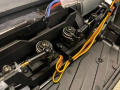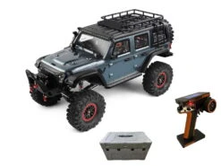 Der DF-4S PRO Crawler von DF Models ist ein High-End Crawler der Spitzenklasse mit 313mm Radstand. Unter der mit einem Magnetverschluss am Chassis befestigten aufklappbaren Scale-Karosserie mit vielen Details und Anbauteilen sowie einer Fahrerfigur und Cockpit (Modelle No.3152, 3153, 3154, 3164), verbirgt sich das Stahlrahmenchassis. Beim Modell No. 3163 ist eine Hartkunststoff Scale-Karosserie, mit vielen Details und Anbauteilen sowie ein voll ausgebautes Cockpit und TĂŒren, die sich öffnen lassen. Metall-Verstrebungen und Lenkstangen liefern die nötige StabilitĂ€t. Senkrecht verbaute Voll-Aluminium-ĂldruckstoĂdĂ€mpfer liefern perfekte Performance in jedem GelĂ€nde. Das schaltbare 2-Gang-Getriebe lĂ€sst langsames Crawlen (ca. 3 km/h) und zĂŒgiges Fahren (ca. 13 km/h) zu. Der zu den VogĂ€nger Versionen ĂŒberarbeitete Fahrtenregler hat nun eine Drag-Brake, die ein wegrollen des Modells beim Anhalten am Hang verhindert. Der 550er Elektromotor kann mit einem 7,4 Volt LiPo Akku befeuert werden (nicht im Lieferumfang enthalten) und erlaubt so extrem lange Fahrzeiten. Dank der universellen Akkuhalterung sind nahezu jede Art an 2S-LiPo-Akkus zu verwenden. Die Scale Karosserie ist mit einer LED-Beleuchtung versehen (Lichtbalken, Suchscheinwerfer, RĂŒckfahrlicht, Bremslicht, Blinker), die ĂŒber einen Schalter an der Fernsteuerung ein-/ ausgeschalten werden kann. Die elektrische Seilwinde mit Stahlseil kann ebenfalls per Sender betĂ€tigt werden (Die Funktion wurde gegenĂŒber der Modellreihe 2023 nochmal optimiert und ist nun Benutzfreundlicher bedienbar!). Dies sind aber nur die Standard-Features des DF-4S PRO Crawlers … das Modell wartet aber mit vielen weiteren Features auf! Die Differentiale des Modells sind unterschiedlich per Fernsteuerung sperr- oder entsperrbar (beide entsperrt, beide gesperrt, nur vorne gesperrt und hinten entsperrt). Der Antrieb zu den RĂ€dern ist zusĂ€tzlich durch ein Getriebe untersetzt und lĂ€sst so eine perfekte Kraftausbeute zu. Diese Portalachsen haben den Zusatzeffekt, dass das Modell mehr Bodenfreiheit hat und nicht, wie bei Standard-Achsen ĂŒblich, ĂŒber die Hindernisse âspringtâ. Die Fernsteuerung ist ein weiteres Highlight. Hier können diverse Daten auf dem LCD-Display abgelesen werden, Akkuzustand der Senderbatterien, SendestĂ€rke, welcher Gang (low oder high) eingelegt ist, Lenkausschlag in %, Gasstellung in %, Trimmstatus. Das Lenkrad hat einen Zusatzhebel, mit diesem ist eine âEin-Hand-Steuerungâ möglich. Geliefert wird der DF-4S PRO in einer Transportbox. DF-4S PRO … Crawler der Oberklasse, der keine WĂŒnsche offen lĂ€sst!