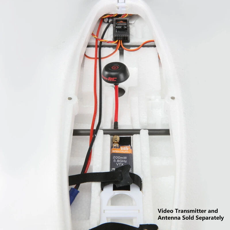 Im Mittelpunkt der erstaunlichen Fähigkeiten des Flugzeugs steht die fortschrittliche Aerodynamik, die sein Design geprägt hat. Neben seiner effizienten Tragfläche helfen Winglets und Finnen am Rumpf dem Modell, in allen Luftarten treu zu bleiben. Vortex-Generatoren in der Nähe der Vorderkante der Oberseite des Flügels und direkt vor den Elevons an der Unterseite des Flügels verbessern die Stabilität und Kontrolle bei langsamen Geschwindigkeiten. Die Flugzeugzelle selbst besteht aus karbonverstärktem Z-Foam™-Hohlkernmaterial, das das Gewicht auf ein Minimum reduziert und gleichzeitig Festigkeit und Steifigkeit beibehält.
