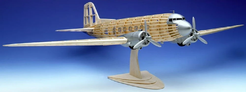 Die Douglas DC-3 ist ein reines Standmodell. Dieser Bausatz enthält bestes Balsamaterial und eine Bauanleitung.