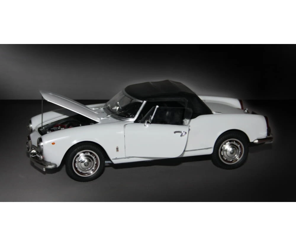 In 1962 the Alfa Romeo Giulietta Spider evolved with the adoption of some aesthetic improvements on the bodywork, some interior details and, the new 1.570 cm3 four cylinder engine able to release 92 Hp. Thanks to the new engine the Italian car was able to reach the max speed of 172 Km/h. The mechanical lay-out was based on the rear-wheel drive and four independent wheel suspension. The „Veloce“ sport version was able to offer to the customers a powerful engine (112 Hp) with two carburetors and the adoption of the disk brakes on the frontal wheels.