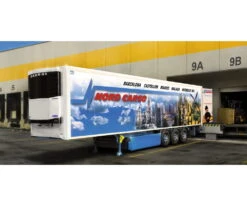 This latest-generation semitrailer is representative of much of Europe’s on-road haulage vehicles. Featuring an efficient braking system, side impact protection, a considerable load capacity, these trailers are used extensively and are produced by at least ten or so specialised companies, which provide a comprehensive range of variants to meet the specific needs of individual customers.