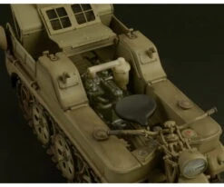 At the beginning, Sd.Kfz 2 „Kettenkrad“ was developed as light means of transport for airborne troops. It was a small vehicle with the front similar to a motorcycle, characterized by its handlebars and its central wheel and by a rear designed to Feature a 6 wheels tracked structure. The Kettenkrad could transport 2 passengers, additionally to the driver, or transport goods and ammunitions. It could reach a top speed of 70 km/h thanks to its OHV inline-four Opel water-cooling, the same featured on Opel Olympia car. Through its tow hook it was able to drag up to 450 kg of goods as antitank cannons of moderate size. The Kettenkrad resulted to be perfect in carrying loads and people on uneven grounds, as those sandy in North Africa or muddy ones is Russian Steppe. Later, since 1944 onwards, it was used on runways for handling of jet fighters Messerschmitt Me 262 and jet bombers Arado A-234.