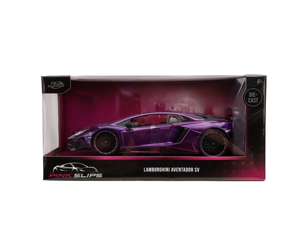 Jada Toys – Pink Slips Lamborghini Aventador SV – 1:24 Modellauto (20,3 cm) aus Metall mit Gummireifen und Teilen zum Öffnen, Spielzeug-Auto für Erwachsene und Kinder ab 8 Jahre