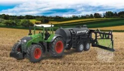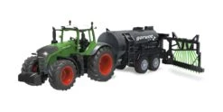Die optimale Ergänzung zu den ferngesteuerten Traktoren von JAMARA kommt jetzt in Form eines Fasswagens mit Schlauchverteiler. Einfach ankoppeln und mit dem Zugfahrzeug verbinden, schon ist der offiziell lizensierte Garant Fasswagen einsatzbereit. Der große Tank kann mit ca. 450ml Flüssigkeit befüllt werden und nachdem die Schleppschlauchverteiler auf volle Arbeitsbreite ausgeklappt wurden kann die Arbeit beginnen. Mit einem Druck auf die Fernsteuerung des Traktors beginnt der Fasswagen die eingefüllte Flüssigkeit durch die Schläuche auf den Boden zu spritzen. So können sich die kleinen Landwirte wie richtig große Farmer fühlen. Highlights Offiziell lizenziert Großer 450 ml Tank für langen Spielspaß Funktionen Spritzfunktion ein/aus Schlauchverteiler manüll ausklappbar TechnischeDaten Akku enthalten: Nein Batterien Typ 1 Modell inkl.: Nein Batterien Typ 2 Fernsteuerung inkl.: Nein Batterien enthalten: Nein Batterien erforderlich: Nein Fernsteuerung: Nein Fernsteuerung Freqünz: 2,4GHz Ladegerät: Nein Produktdetails Farbe: schwarz Lizenz: Ja Marke: JAMARA Maßstab: 1:16 Siegel und Zertifizierungen: spiel gut Siegel Video: Ja Lieferumfang Modell Anleitung Hinweise Altersempfehlung: ab 6 Jahre Ja Zielgruppe: Unisex-Kinder Sicherheitshinweise ACHTUNG – Benutzung unter unmittelbarer Aufsicht von Erwachsenen. ACHTUNG – Für Kinder unter 36 Monaten nicht geeignet. Enthält verschluckbare Kleinteile. Erstickungsgefahr! Von Kleinkindern unbedingt fernhalten.