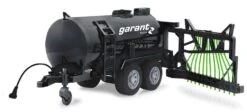Die optimale Ergänzung zu den ferngesteuerten Traktoren von JAMARA kommt jetzt in Form eines Fasswagens mit Schlauchverteiler. Einfach ankoppeln und mit dem Zugfahrzeug verbinden, schon ist der offiziell lizensierte Garant Fasswagen einsatzbereit. Der große Tank kann mit ca. 450ml Flüssigkeit befüllt werden und nachdem die Schleppschlauchverteiler auf volle Arbeitsbreite ausgeklappt wurden kann die Arbeit beginnen. Mit einem Druck auf die Fernsteuerung des Traktors beginnt der Fasswagen die eingefüllte Flüssigkeit durch die Schläuche auf den Boden zu spritzen. So können sich die kleinen Landwirte wie richtig große Farmer fühlen. Highlights Offiziell lizenziert Großer 450 ml Tank für langen Spielspaß Funktionen Spritzfunktion ein/aus Schlauchverteiler manüll ausklappbar TechnischeDaten Akku enthalten: Nein Batterien Typ 1 Modell inkl.: Nein Batterien Typ 2 Fernsteuerung inkl.: Nein Batterien enthalten: Nein Batterien erforderlich: Nein Fernsteuerung: Nein Fernsteuerung Freqünz: 2,4GHz Ladegerät: Nein Produktdetails Farbe: schwarz Lizenz: Ja Marke: JAMARA Maßstab: 1:16 Siegel und Zertifizierungen: spiel gut Siegel Video: Ja Lieferumfang Modell Anleitung Hinweise Altersempfehlung: ab 6 Jahre Ja Zielgruppe: Unisex-Kinder Sicherheitshinweise ACHTUNG – Benutzung unter unmittelbarer Aufsicht von Erwachsenen. ACHTUNG – Für Kinder unter 36 Monaten nicht geeignet. Enthält verschluckbare Kleinteile. Erstickungsgefahr! Von Kleinkindern unbedingt fernhalten.
