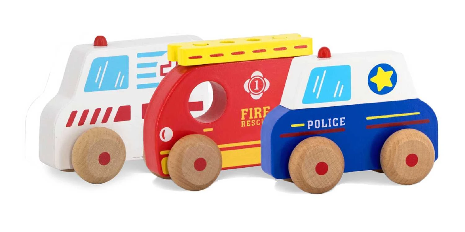 Jamara Holzspielzeug Kidiwood Steckspiel Einsatzfahrzeuge 4tlg.