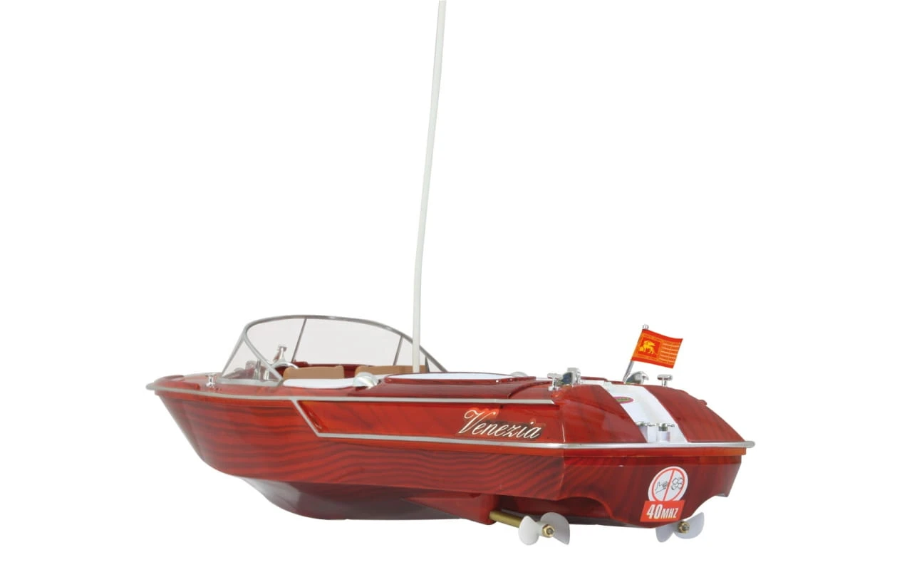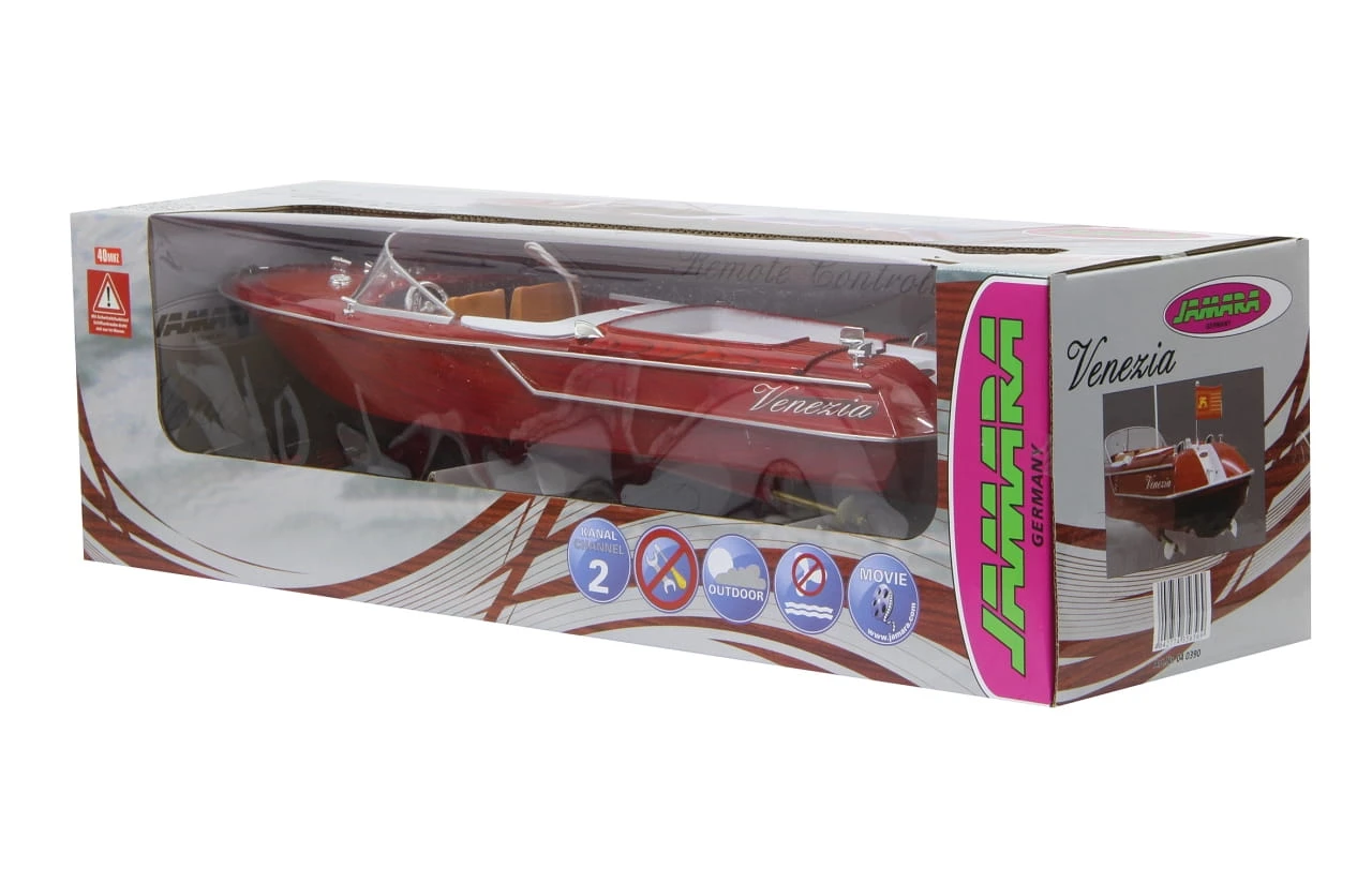 Sie wollten schon immer mal Kapitän einer schönen Motoyacht sein? Kein Problem. Mit der Venezia bekommen Hobbykapitäne genau das Richtige. Mit Zwei kraftvollen Motoren kann die Venezia durch den heimischen Swimmingpool oder den Badesee pflügen. Eine aufwändig designte Nachbildung einer hochwertigen Holzoptik, eine Sicherheitsabschaltung und eine mit LED beleuchtete Fernsteuerung macht die Venezia für Kleine und Große gleichermaßen interessant.