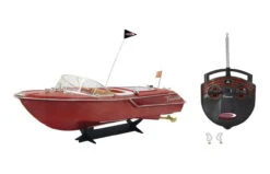 Wichtiger Hinweis: Bitte beachten Sie, aufgrund der eingebauten Sicherheitsfunktion drehen sich die Schiffsschrauben nur im Wasser! Sie wollten schon immer mal Kapitän einer schönen Motoyacht sein? Kein Problem. Mit der Venezia bekommen Hobbykapitäne genau das Richtige. Mit Zwei kraftvollen Motoren kann die Venezia durch den heimischen Swimmingpool oder den Badesee pflügen. Eine aufwändig designte Nachbildung einer hochwertigen Holzoptik, eine Sicherheitsabschaltung und eine mit LED beleuchtete Fernsteuerung macht die Venezia für Kleine und Große gleichermaßen interessant. Highlights: 2 Antriebsmotoren Stahl Antriebswellen Aufwändig designte Nachbildung in hochwertiger Holzoptik Deckel mit Schnellverschlüssen LED beleuchtete Fernsteuerung Mit Sicherheitsfunktion – Schiffsschrauben drehen sich nur im Wasser. Funktion: Links/rechts Vorwärts/rückwärts