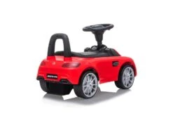 Für die kleinen Entdecker in der Familie hat JAMARA das ideale, kindgerechte Fahrzeug in drei verschiedenen Farben. Der offiziell lizenzierte Mercedes-AMG GT Kinderrutscher bietet dank der stabilen und liebevoll gestalteten Karosserie ein sicheres Fahrvergnügen. Dafür sorgen die niedrige Sitzhöhe und der eigens konstruierte Kippschutz am hinteren Ende des Rutschautos. Mit dem griffigen Lenkrad mit Hupe, Musik-Sound und dem – dem Original nachempfundenen – Kühlergrill und Felgen, ist der Mercedes-Rutscher das ideale Fahrzeug für die kleinsten Rennfahrer – gleichermaßen Indoor wie Outdoor. Dieser Rutscher hebt sich deutlich aus der Masse der Kinderfahrzeuge ab. Mit seinen Flüsterreifen, einem Geheimversteck unter dem aufklappbaren Sitz und dem extravaganten Design lässt es das Herz eines jeden Fans der deutschen Luxuswaren höher schlagen. Highlights Offiziell lizenziert Originalgetreue Optik Musik Kippschutz Kofferraum unter der Sitzfläche Schub- und Haltegriff Flüsterreifen Scheinwerferattrappen Funktionen Hupe am Lenkrad Musik am Lenkrad Sitz aufklappbar TechnischeDaten Akku enthalten: Nein Batterien Typ 1 Modell inkl.: Nein Batterien Typ 2 Fernsteuerung inkl.: Nein Batterien enthalten: Nein Batterien erforderlich: Ja Fernsteuerung: Nein Batterie Typ 1 Modell: AA-Zellen // LR6 (Alkaline) // HR6 (NiMH) Ladegerät: Nein Stück Batterie Typ 1 Modell: 2 Produktdetails Sitzhöhe (cm): 21 Aufbauzeit ca. (min): 15 Farbe: rot Lizenz: Ja Maximalgewicht (kg): 23 Marke: JAMARA Kids Lieferumfang Modell Anleitung empfohlenes_zubehör_gruppe Batterie AAA Micro SuperC VE4 1,5V 1000mAh in Folie eingeschweisst art_nr 140280 Ampelanlage-Grand / Traffic Light-Grand art_nr 460256 Traffic-Set-Grand A art_nr 460257 Traffic-Set-Grand B art_nr 460293 Polizeikelle mit Licht art_nr 460308 Verkehrsschranke Grand art_nr 460491 Hinweise Benötigtes Zubehör: 2 x AAA-Zellen // LR03 (Alkaline) // HR03 (NiMH) Altersempfehlung: ab 12 Monate Ja Zielgruppe: Unisex-Kinder Sicherheitshinweise ACHTUNG – Benutzung unter unmittelbarer Aufsicht von Erwachsenen. Dieses Spielzeug hat keine Bremse. Es besteht Unfall- und Verletzungsgefahr. Nicht auf öffentlichen Verkehrsflächen und im Straßenverkehr benutzen.