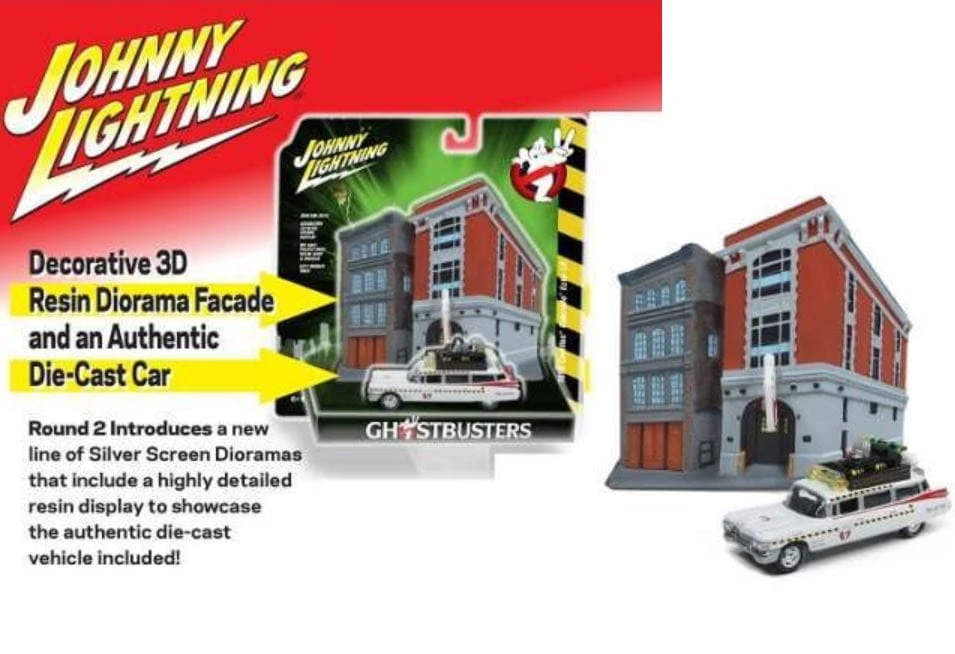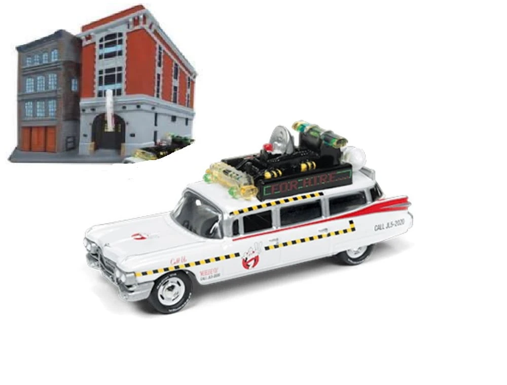 Johnny Lightning Ghostbusters II 1A 1959 Cadillac 1:64 mit Diorama Feuerwehrhaus