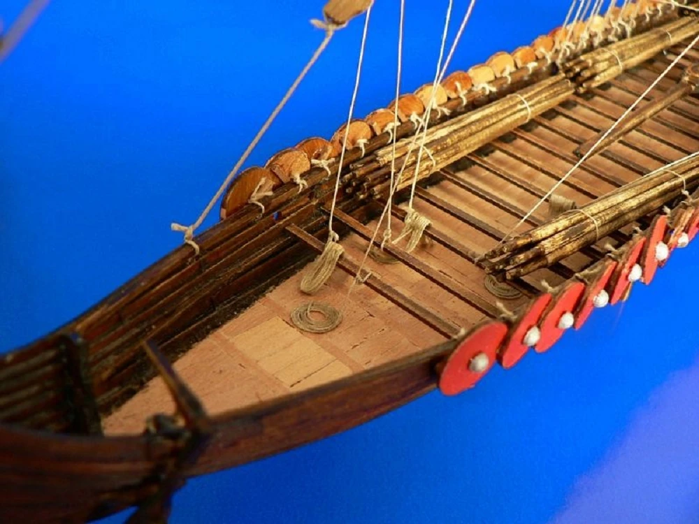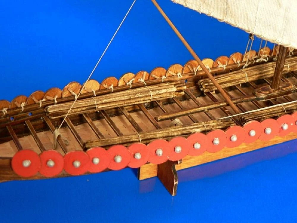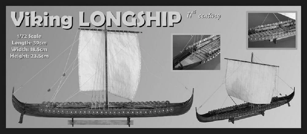 Die Konstruktion basiert auf einem lasergeschnittenem Kiel, Spanten und Planken. Alle Holzteile, der Segelstoff, Takelgarn und die runden Schilde gehören, wie auch ein kleiner Ständer zum Lieferumfang des Modells. Der Bausatz wird durch einen genauen Bauplan mit bebilderter englischer Bauanleitung abgerundet.