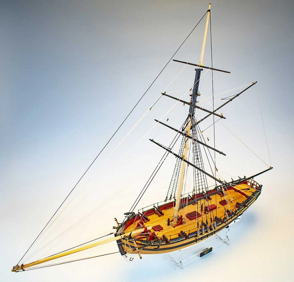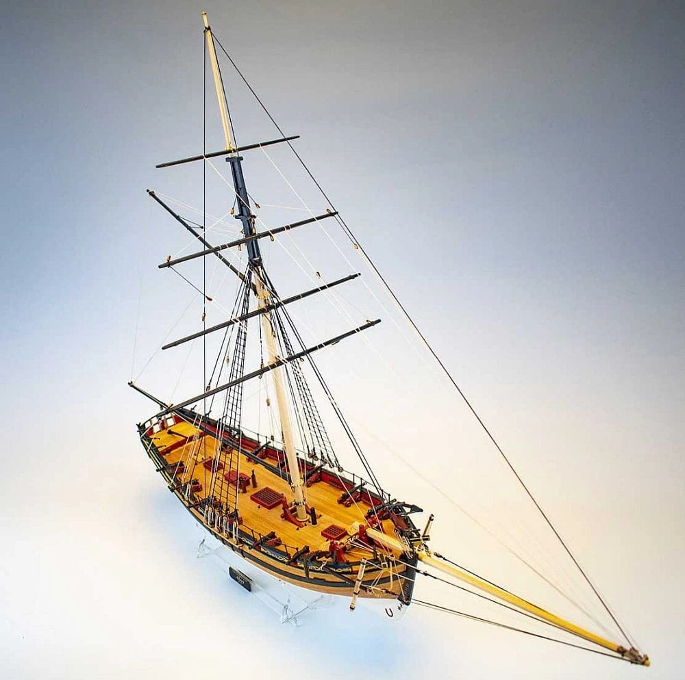 Der Modellbausatz wurde so gestaltet, dass er sowohl in Bezug auf den Maßstab als auch auf die Details so genau ist, wie es für einen Bausatz möglich ist. Zu diesem Zweck wurden alle Rumpf- und Decksbeschläge maßgeschneidert und keine Beschläge von der Stange verwendet. Für einen Bausatz mit so vielen Details ist er einfach zu bauen, dennoch sind grundlegende Holzbearbeitungsfähigkeiten (und Geduld) erforderlich.