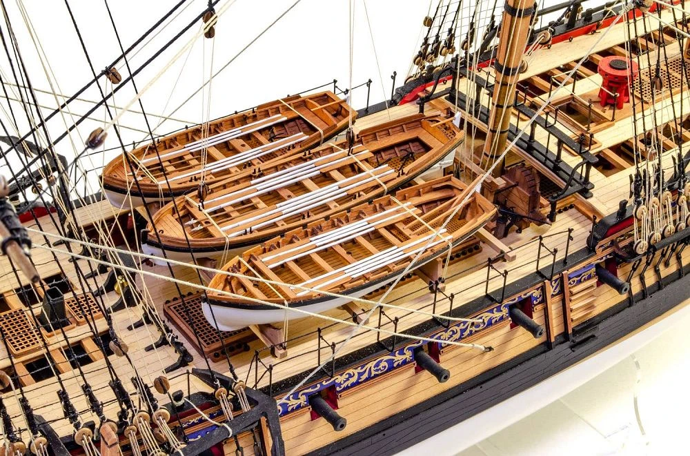 – Drei hochdetaillierte Beiboote aus Birnbaumholz.