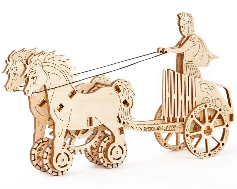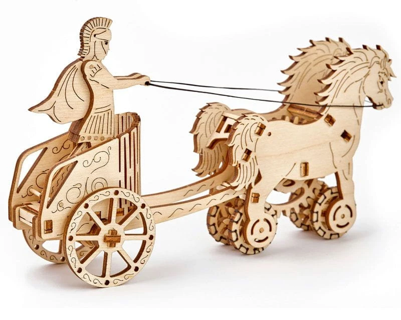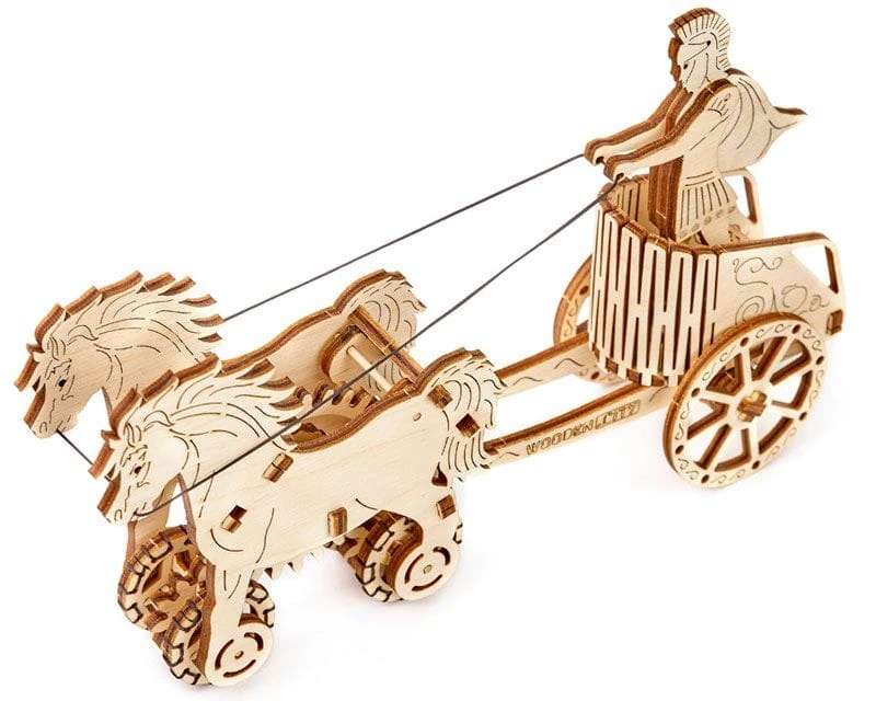 Einfach in der Montage, aber immer wieder mit Inspiration aufgeladen, ist unser Holz 3D-Modell Römischer Streitwagen. Dies ist eine realistische Kopie des ehrwürdigen Kampfwagens, komplett mit einem Paar Pferde und einem mutigen Reiter. Sie werden sich an die faszinierende Geschichte der Schlachten im alten Rom erinnern!