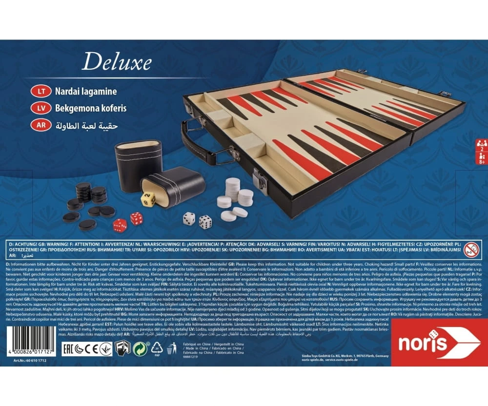 Das klassische Backgammon-Spiel im handlichen Koffer in edler Ausführung. Backgammon ist eines der ältesten Brettspiele der Welt. Die einzigartige Mischung aus Strategie und Glücksspiel macht das Spiel zum weltweit beliebten Klassiker. Ziel des Spieles ist es, alle seine Spielsteine in das Home-Board zu bringen um sie dann hinauszuwürfel. Wer als erster keine Steine mehr auf dem Brett hat, gewinnt das Spiel.