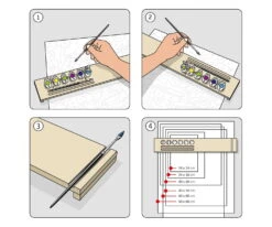 De “Paintmaster” van lindenhout is een handig hulpmiddel voor de hobby Schilderen op nummers. Het verschuifbare houten plankje 540 x 90 x 18 mm kan in elke richting over het schildervoorbeeld worden geplaatst. De verfpotjes staan veilig en klaar voor het grijpen in de houder, de penseelvoerende hand rust niet meer op het schildervoorbeeld maar op het prettig gladde lindenhout en natte verf kan niet meer worden besmeurd. Voor korte pauzes kan het penseel in een van de drie groeven worden neergelegd. Met de “Paintmaster” kunnen rechts- en linkshandigen perfect schilderen en bereiken altijd een uitstekend schilderresultaat bij alle beeldformaten van het SCHIPPER assortiment.