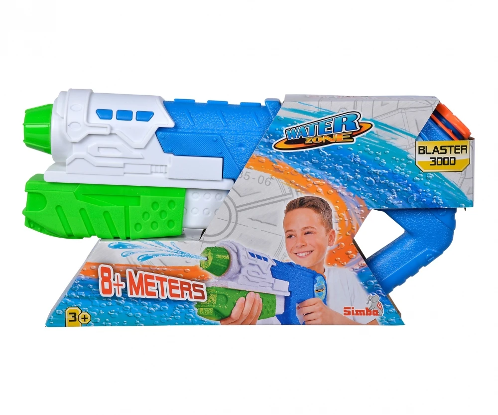 Mit dem Waterzone Water Blaster 3000 von Simba Toys bist du für jede Wasserschlacht gerüstet. Die Wasserpistole hat einen Pumpmechanismus und ist 32cm groß. Das Tankvolumen beträgt 800ml. Für Kinder ab 3 Jahren geeignet.