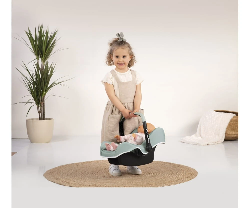 Ein echter Maxi-Cosi-Sitz für deine Lieblingspuppe! Der Smoby Maxi-Cosi Puppenautositz verfügt über einen praktischen Tragebügel der sich leicht nach vorne und hinten umlegen lässt – ganz wie beim großen Maxi-Cosi Original. An der Rückseite des Sitzes befindet sich ein Staufach für die wichtigsten Pflegeprodukte. Zur Reinigung einfach den Bezug aus Kunststoffgewebe feucht abwischen. Geeignet für alle Puppen bis 42 cm. Lieferung ohne Puppe..