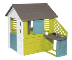 Das stabile, farbenfrohe Smoby Spielhaus Pretty bietet mit seiner tollen Sommerküche viel Spielspaß für die Kleinen. Die an der Außenwand befestigte Spielküche verfügt über eine Spüle mit Wasserhahn (nicht funktionsfähig), eine Barbecue-Grillplatte zum Kochen und Grillen sowie eine Geschirrablage. Vervollständigt wird das Koch-Erlebnis durch 2 Gläser, 2 Teller, verschiedene Küchenhelfer, Würstchen und einen kleinen Topf.