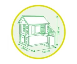 Hergestellt aus hochwertigem, UV-stabilem Kunststoff ist das Pretty Haus von Smoby besonders widerstandsfähig gegen Wettereinflüsse und Ausbleichung. Produktmaße (LxBxH): 145 x 110 x 127 cm.