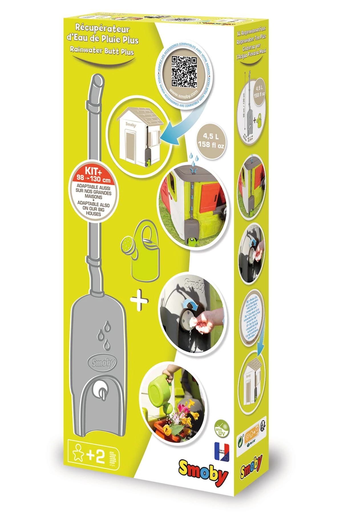Für kleine Gärtner gibt es als Zusatzausstattung ein Regenfass mit Gießkanne. Der Wasserbehälter lässt sich kinderleicht an den Smoby Spielhäusern montieren, über die Regenrinne wird das Regenwasser aufgefangen und im Regenfass gesammelt. Mittels des großen, griffigen Schraubventils können die Kinder das Wasser anschließend in die Gießkanne einlassen und zum Gießen verwenden. Das Regenfass ist aus hochwertigem, UV-stabilem Kunststoff hergestellt und so besonders widerstandsfähig gegen Wettereinflüsse und Ausbleichung.Hergestellt in Frankreich.