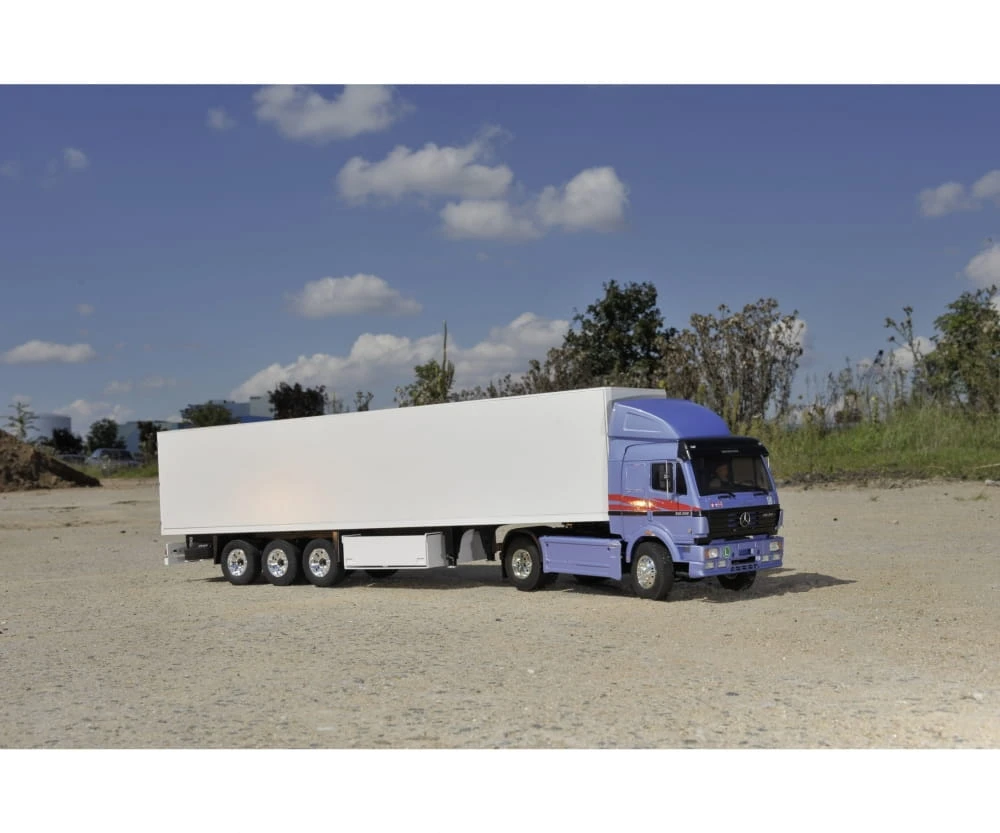 Diese Zugmaschine von TAMIYA überzeugt nicht nur durch seine detailgetreue Nachbildung, sondern auch durch seine perfekte Passgenauigkeit. Der Rahmen, die Blattfedern und die Stoßdämpfer bestehen aus hochwertigem Metall. Eine Karosserie aus schlagfestem Kunststoff und verchromte Felgen sorgen für eine perfekte Optik. Ein 3-Gang Schaltgetriebe wird über ein separates Servo gesteuert und ermöglicht somit ein langsames Anfahren sowie komfortables Schalten während der Fahrt.