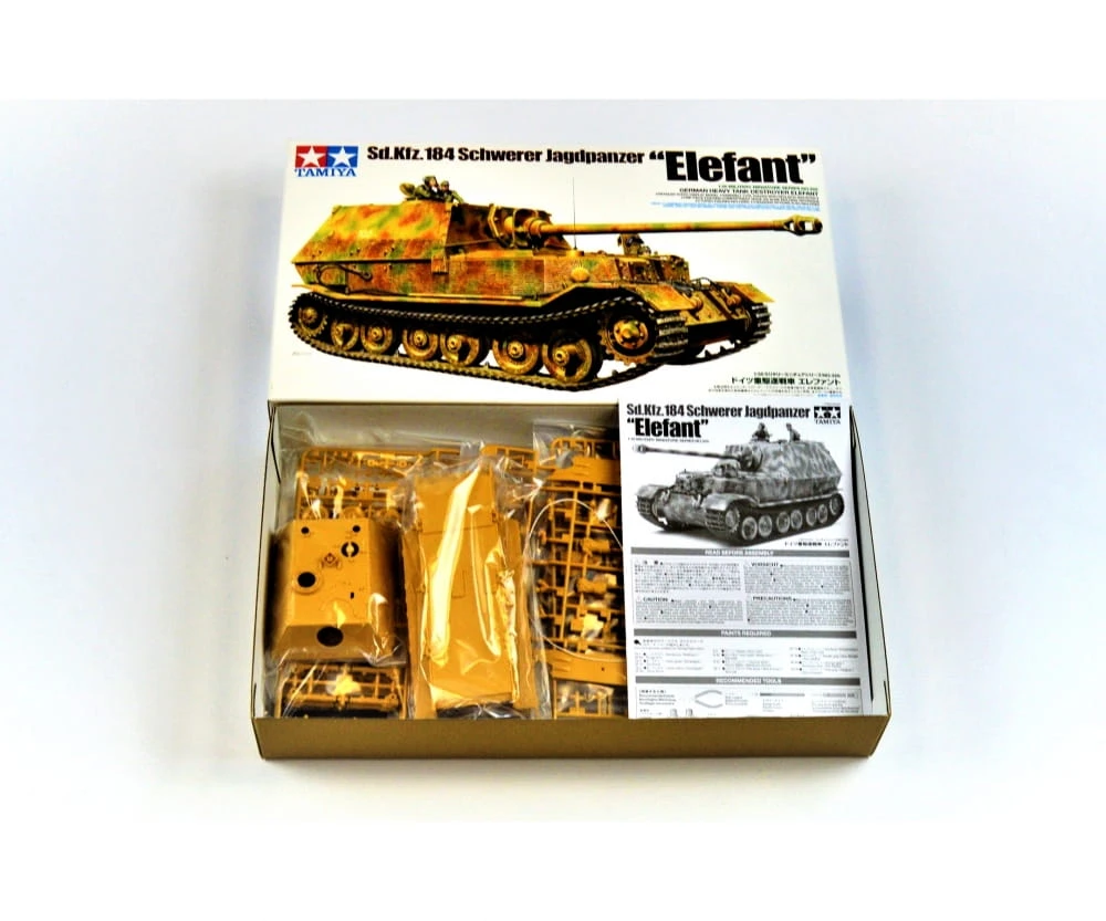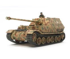 This is a 1/48 scale assembly model of the German Heavy Tank Destroyer Elephant. The newly tooled 1/48 Elefant has extensive detail, even at this smaller scale, thanks to the extensive research conducted by Tamiya’s designers to make the 1/35 scale rendition.