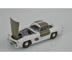 Die zeitlos elegante Form dieses Klassikers ist atemberaubend vom Modell erfasst und umgesetzt. Die Motorhaube und Flügeltüren können geöffnet werden. Die Türen lassen sich in geöffneter Stellung mit einer kleinen Strebe verriegeln.