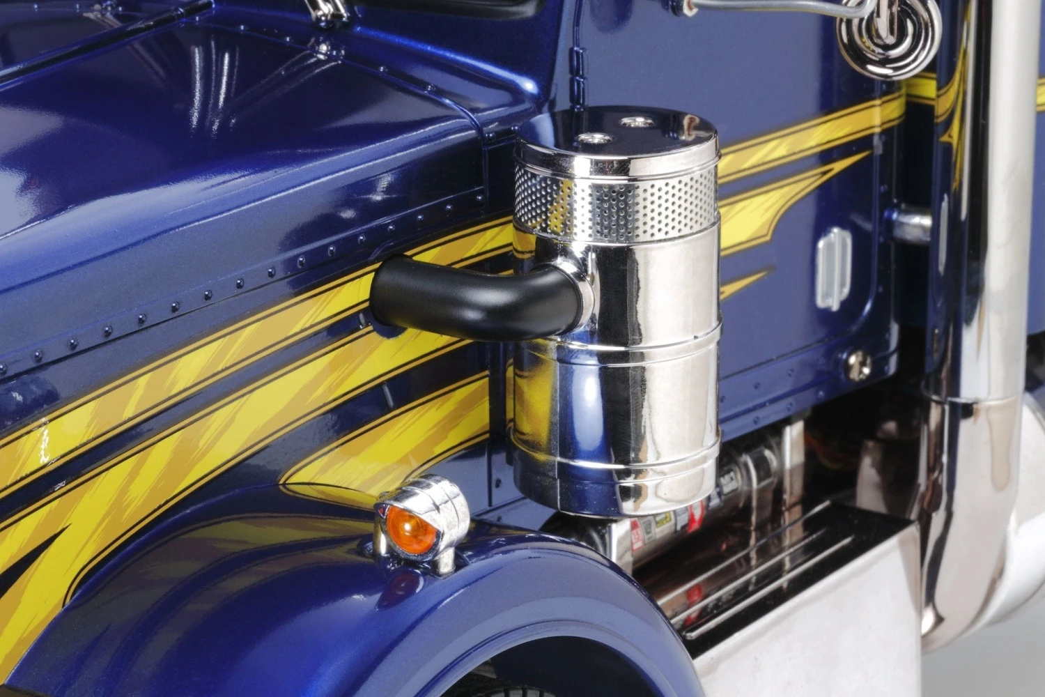 Die King Hauler Karosserie wurde dabei einer gründlichen Tuning-Kur unterzogen und beinhaltet zahlreiche neue und geänderte Teile nach dem Vorbild der aktuellen amerikanischen Truck-Tuningszene. So bauten die TAMIYA Designer neu Metall Teile, verchromte Kunststoffteile für einen neuen unverwechselbaren Look. Weiterhin besitzt der neue Grand Hauler einen längeren Rahmen im Vergleich zum King Hauler und macht ihn damit zu einem echten Show-Truck!