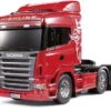 Mit dem 576 mm langen und rund 3,5 kg schweren Bausatzmodell lassen sich beeindruckende Gespanne zusammenstellen. Unter dem nach vorne kippbarem Fahrerhaus findet sich die bewährte und robuste TAMIYA-Trucktechnik. Ein neuer Mighty-Tuned 35T Elektromotor gibt über ein schaltbares 3-Gang-Getriebe seine Kraft an die beiden Hinterachsen ab. Ein detailgetreuer Aluminium-Leiterrahmen verleiht dem Modell die erforderliche Stabilität und Flexibilität.