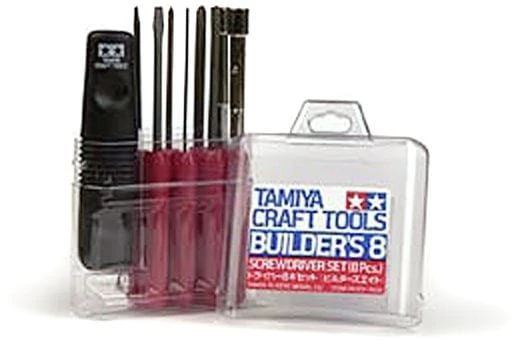 Das 8-teilige TAMIYA-Tool-Set ist ein Begleiter und Helfer für alle Arbeiten an RC-Cars. Die Schraubendreher sind aus robustem und hochfestem Stahl. Der Imbusschlüssel mit 1,5 mm, Stärke z. B. ist aus Chrom-Nickel-Molybdän-Stahl.