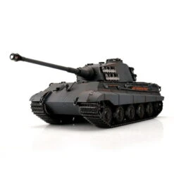 Mit einem Gewicht von rund sieben Kilogramm und den Maßen von ca. 650x200x230 (LxBxH mm) ist der Königstiger ideal für den anspruchsvollen Kunden. In der Profi-Edition zeigt er sich mit qualitativ hervorragender Airbrush-Lackierung, 2.4 GHz Platinentechnik und neuem Lautsprecher. Dieses Modell weist überlegene Fahreigenschaften, verschiedenste Funktionen und realitätsnahen Sound auf. Die hochwertigen Ketten, Treib- und Leiträder sowie Laufrollen, wie auch die Unterwanne und der Gefechtsturm sind aus Metall gefertigt. Viele Kleinteile wie Munition und unterschiedliche Aufkleber runden die maßstabsgetreue Nachbildung perfekt ab.